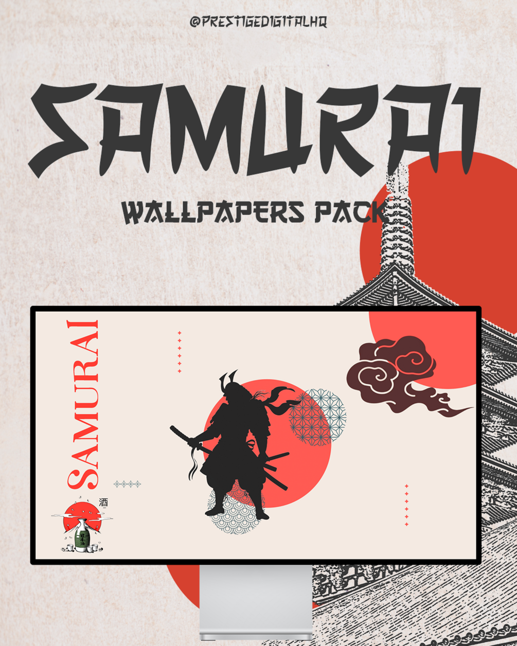Unleash the spirit of the samurai with this exclusive collection of 7 high-quality wallpapers designed for desktops and smartphones. This pack features breathtaking Japanese-inspired artwork, blending traditional elements like Torii gates, cherry blossoms, and serene landscapes with bold samurai silhouettes and modern design aesthetics.