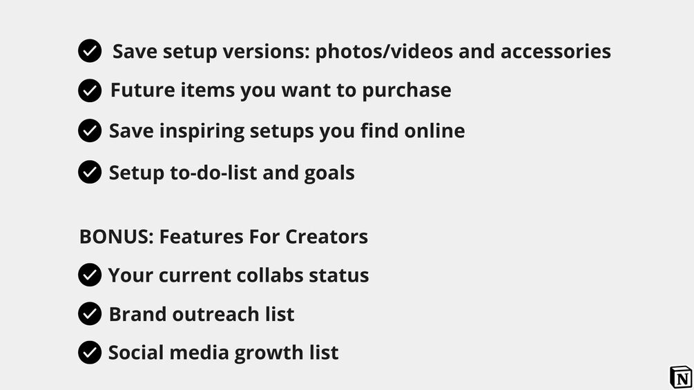 ULTIMATE SETUP TRACKER, a Notion template where you: